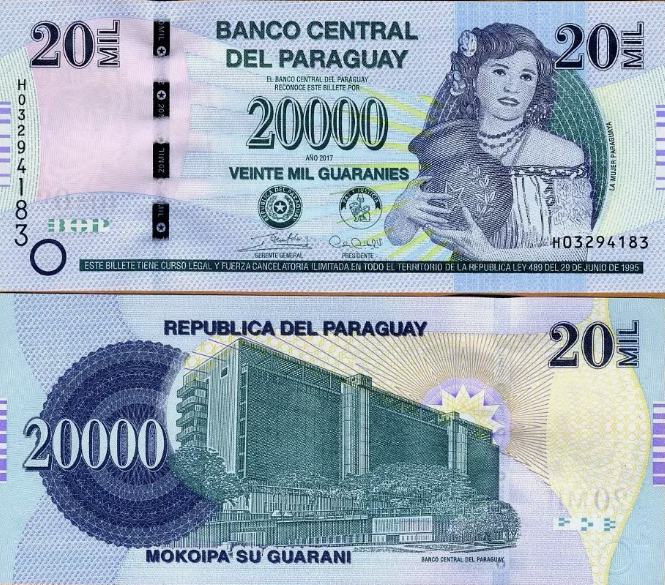 Aktualnie banknot 10 000 guarani ma wartość 5 złotych.